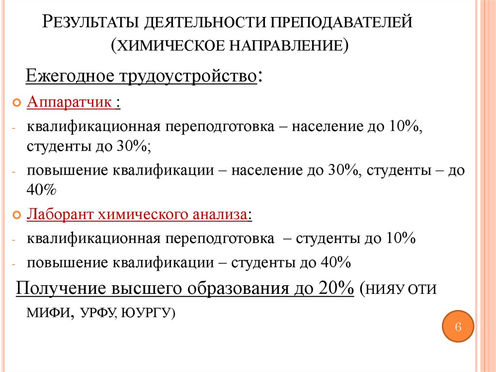 РЕЗУЛЬТАТЫ ДЕЯТЕЛЬНОСТИ ПРЕПОДАВАТЕЛЕЙ(ХИМИЧЕСКОЕ НАПРАВЛЕНИЕ)