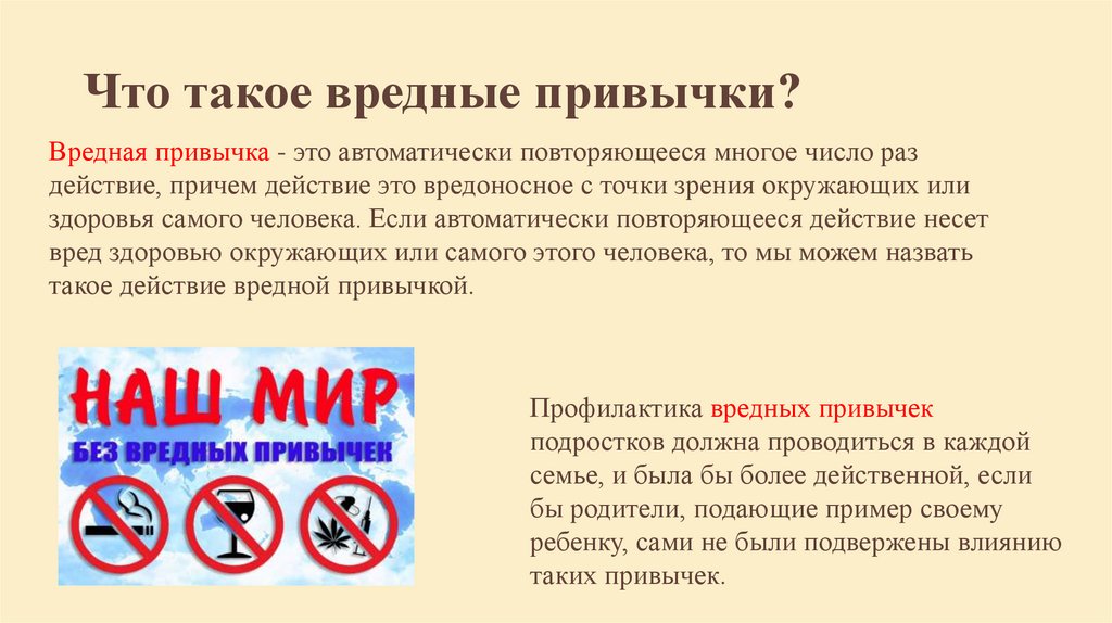 Что такое вредные привычки?Вредная привычка - это автоматически повторяющееся многое число раз