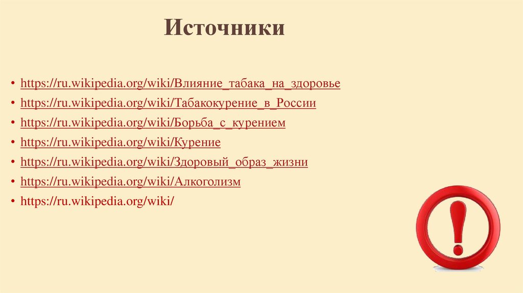 Источники• https://ru.wikipedia.org/wiki/Влияние_табака_на_здоровье