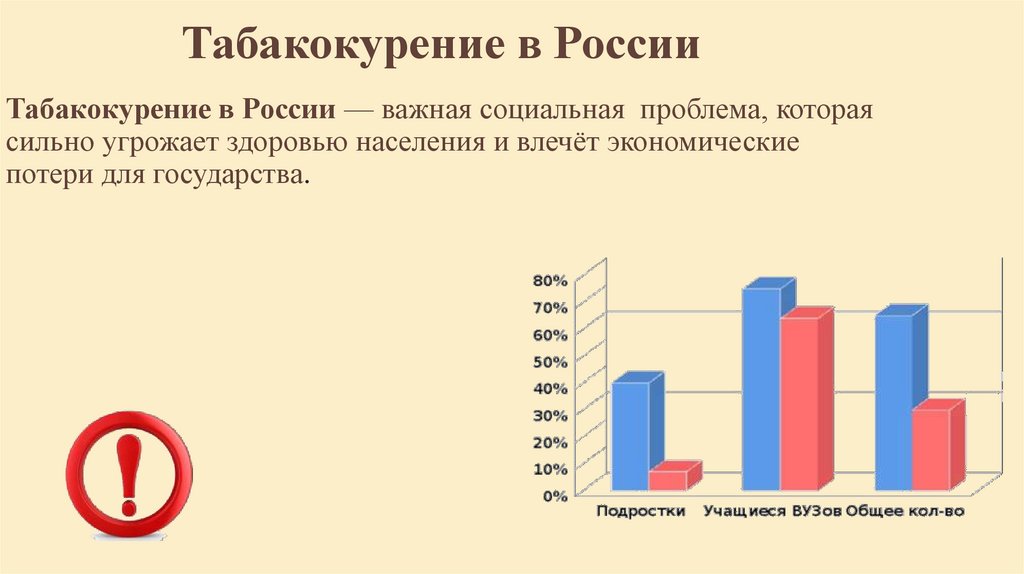 Табакокурение в РоссииТабакокурение в России — важная социальная проблема, которая