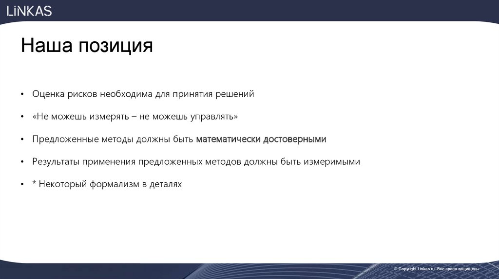 Наша позиция• Оценка рисков необходима для принятия решений