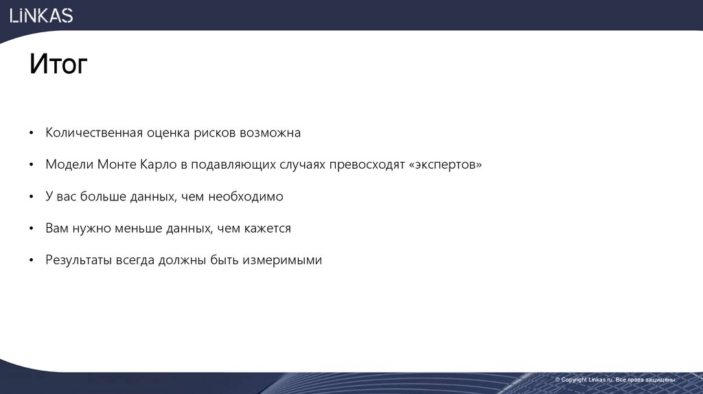 Итог• Количественная оценка рисков возможна