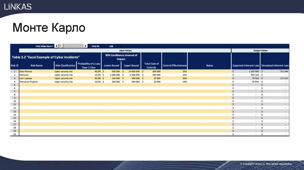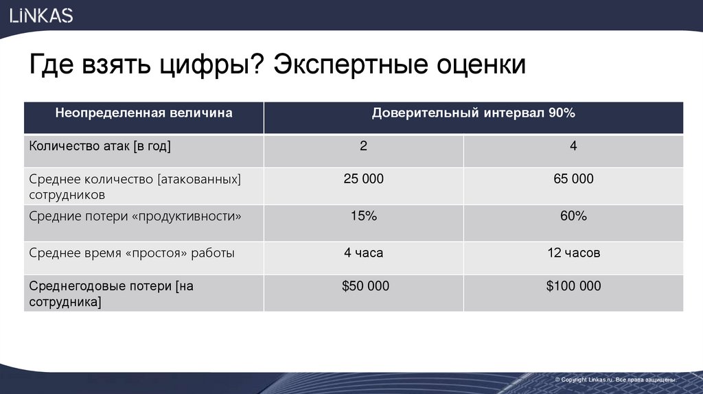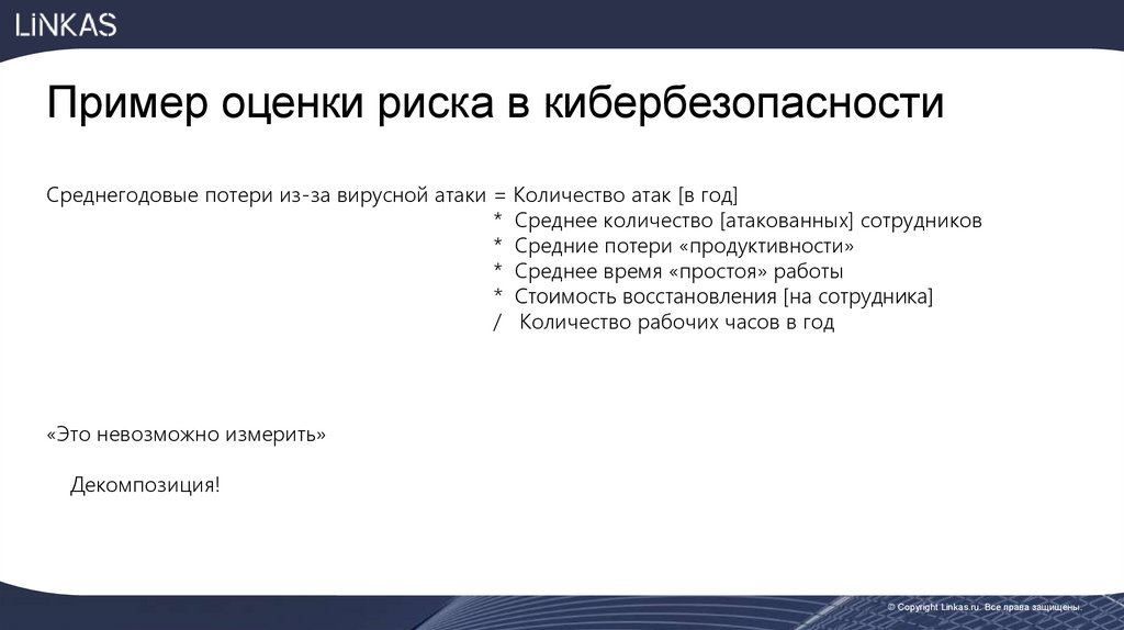 Пример оценки риска в кибербезопасностиСреднегодовые потери из-за вирусной атаки = Количество атак [в год]