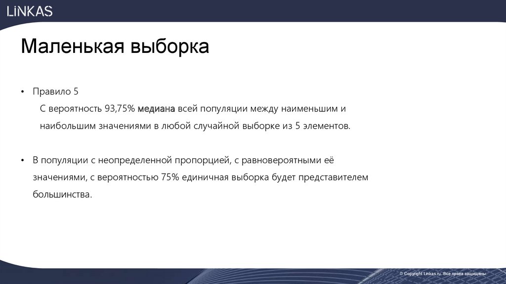 Маленькая выборка• Правило 5