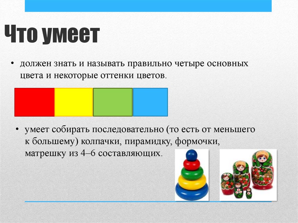 Что умеет• должен знать и называть правильно четыре основных