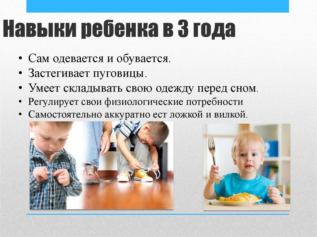 Навыки ребенка в 3 года• Сам одевается и обувается.
