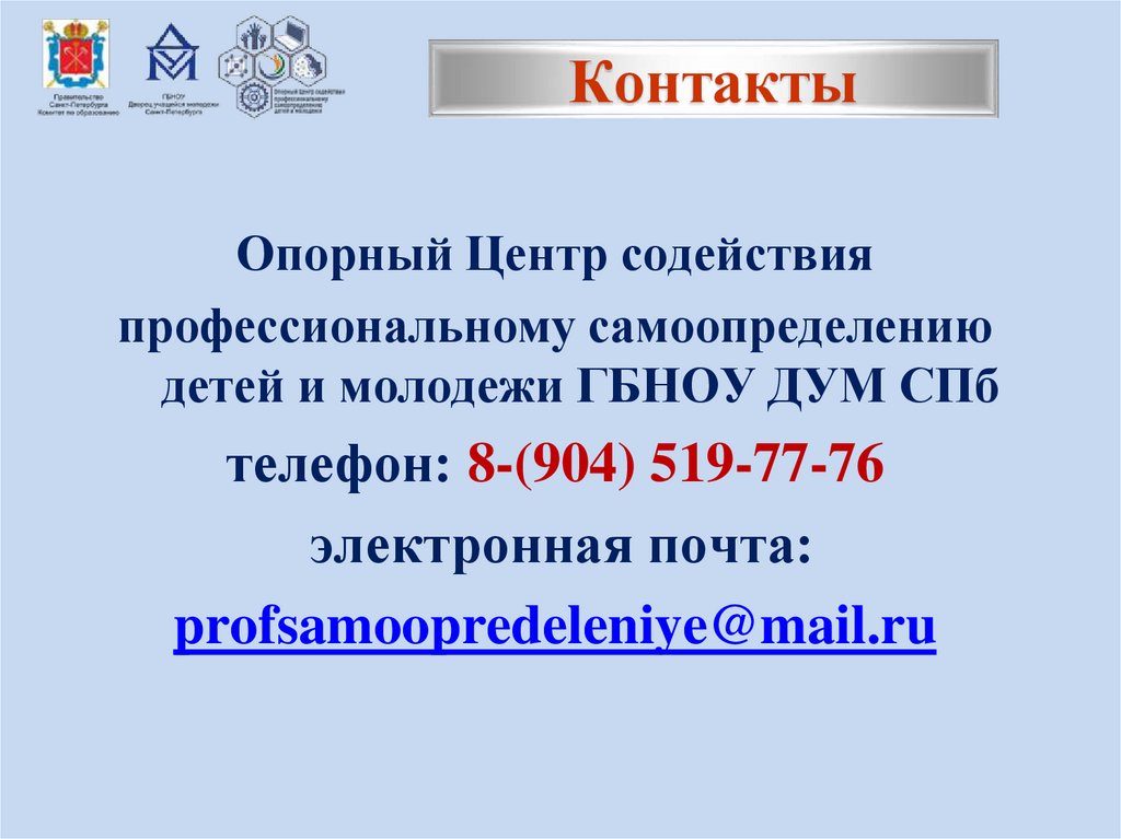 Развитие системы содействия профессиональному самоопределению в Санкт-Петербурге