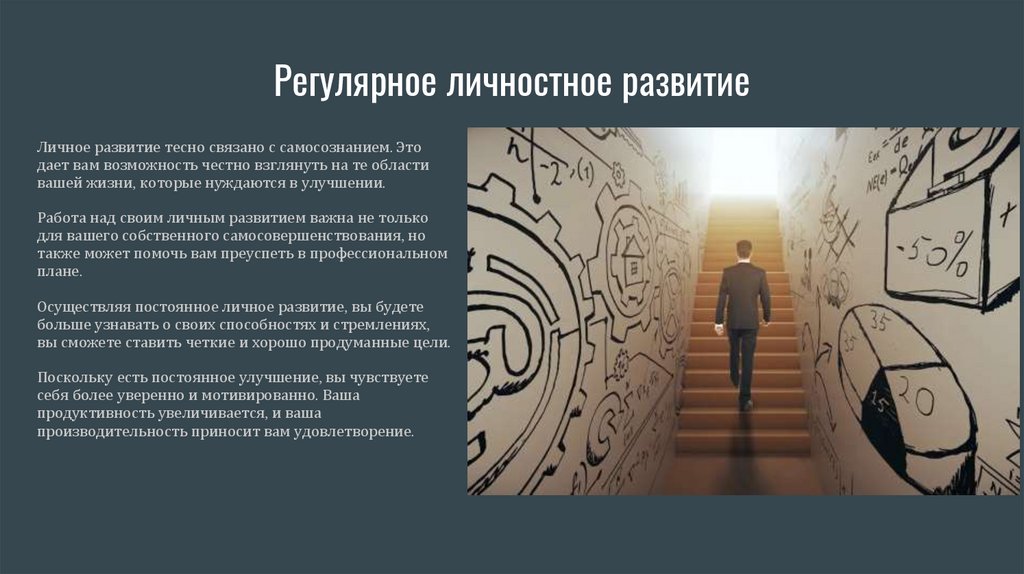 Регулярное личностное развитиеЛичное развитие тесно связано с самосознанием. Это