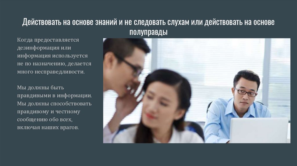 Действовать на основе знаний и не следовать слухам или действовать на основеполуправды