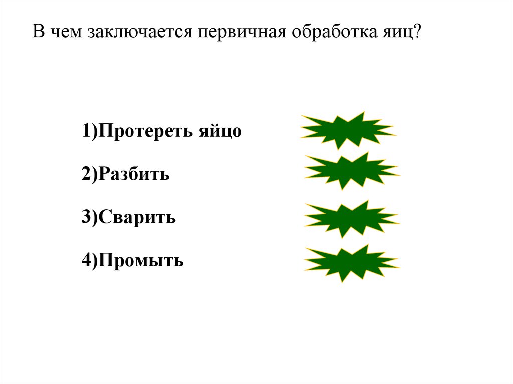 В чем заключается первичная обработка яиц?1)Протереть яйцо