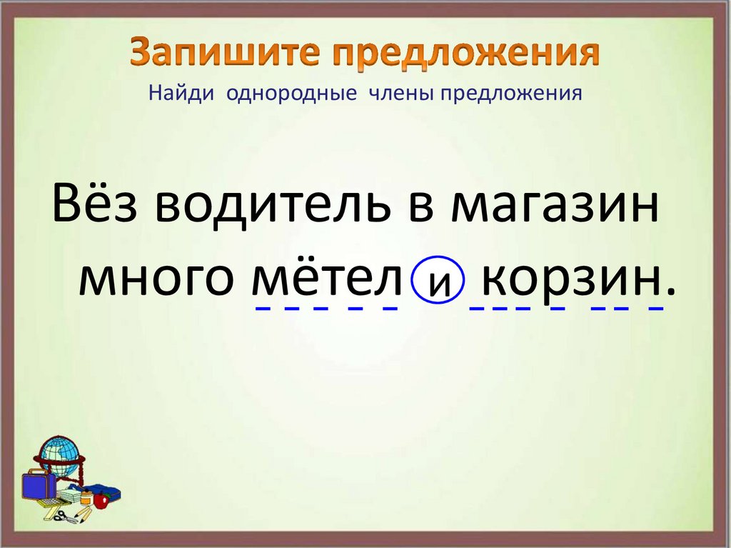 Найди однородные члены предложенияВёз водитель в магазин