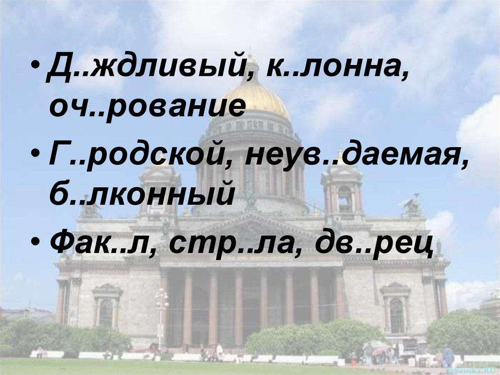 • Д..ждливый, к..лонна,оч..рование