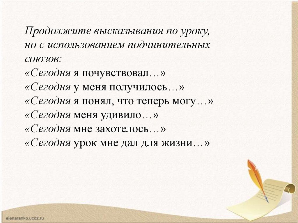Продолжите высказывания по уроку,но с использованием подчинительных