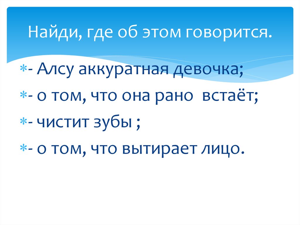 Найди, где об этом говорится.- Алсу аккуратная девочка;