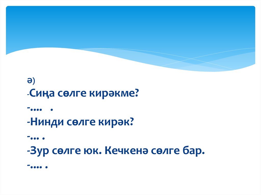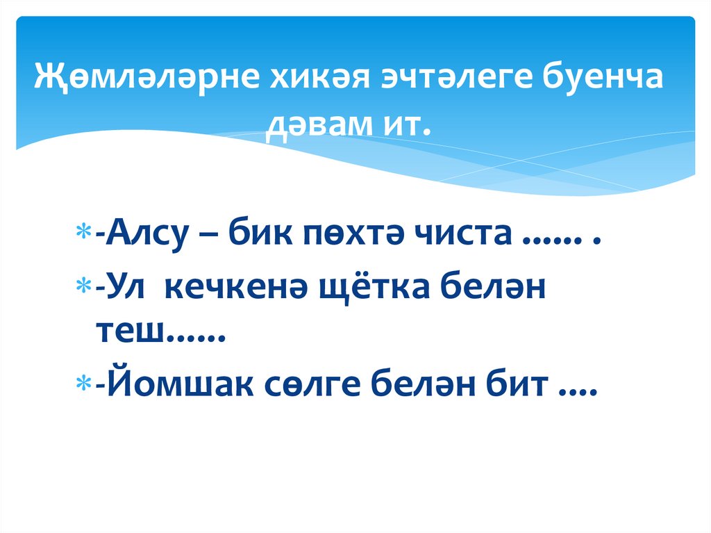 Җөмләләрне хикәя эчтәлеге буенчадәвам ит.