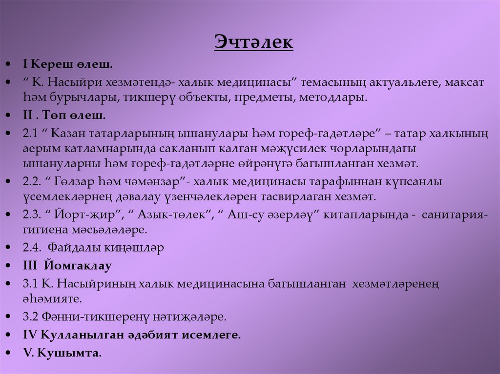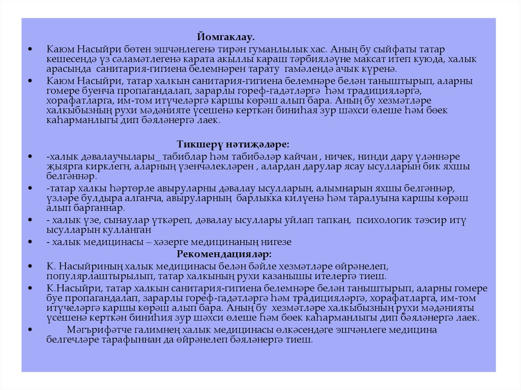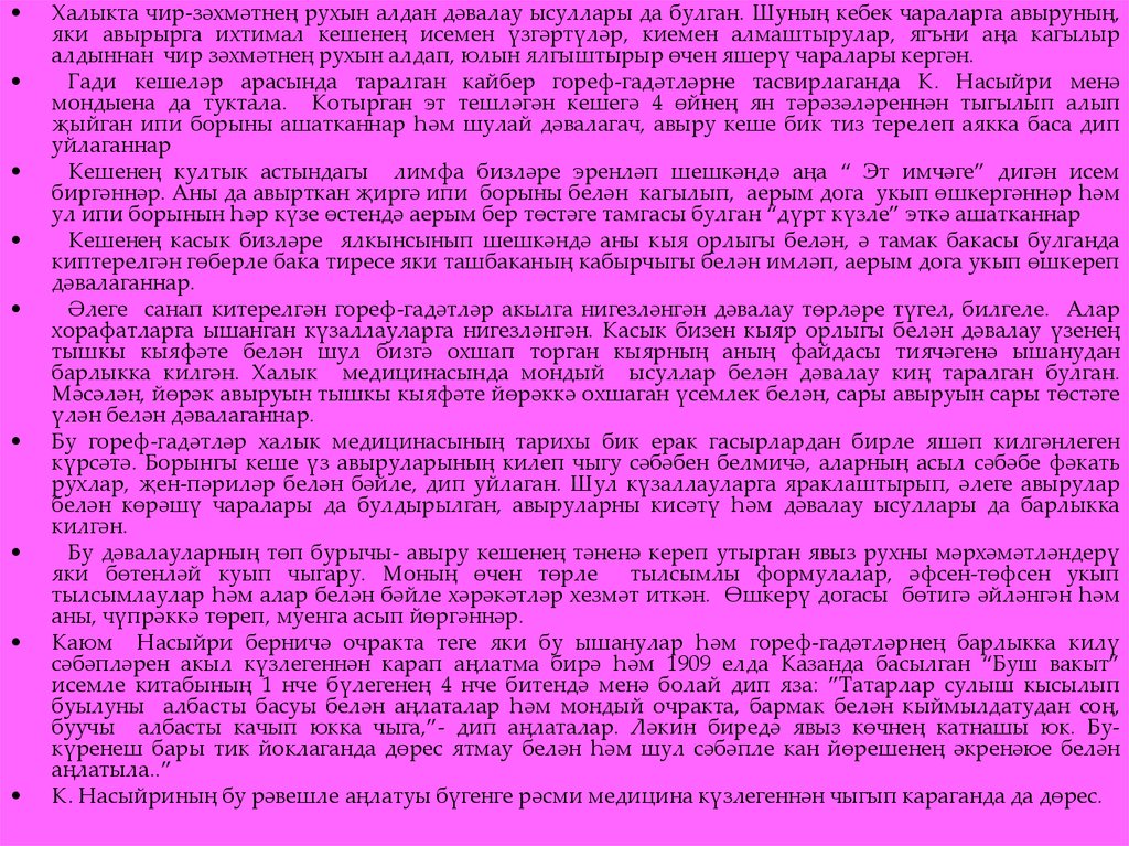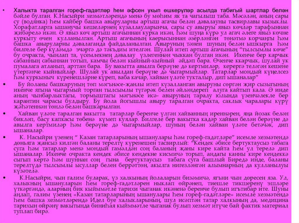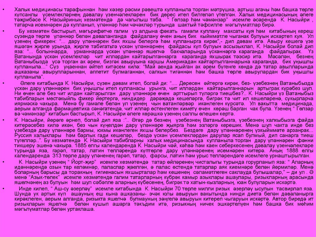 • 3.1 К. Насыйриның халык медицинасына багышланган хезмәтләренең