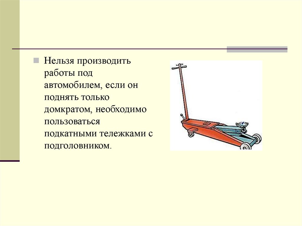При ТО и ремонте автомобиля2. При установке автомобиля на пост технического обслуживания или ремонт необходимо: