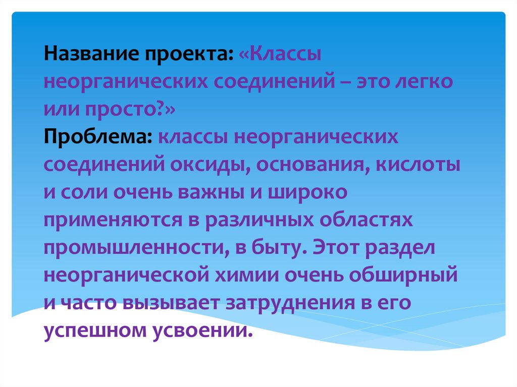 Название проекта: «Классынеорганических соединений – это легко