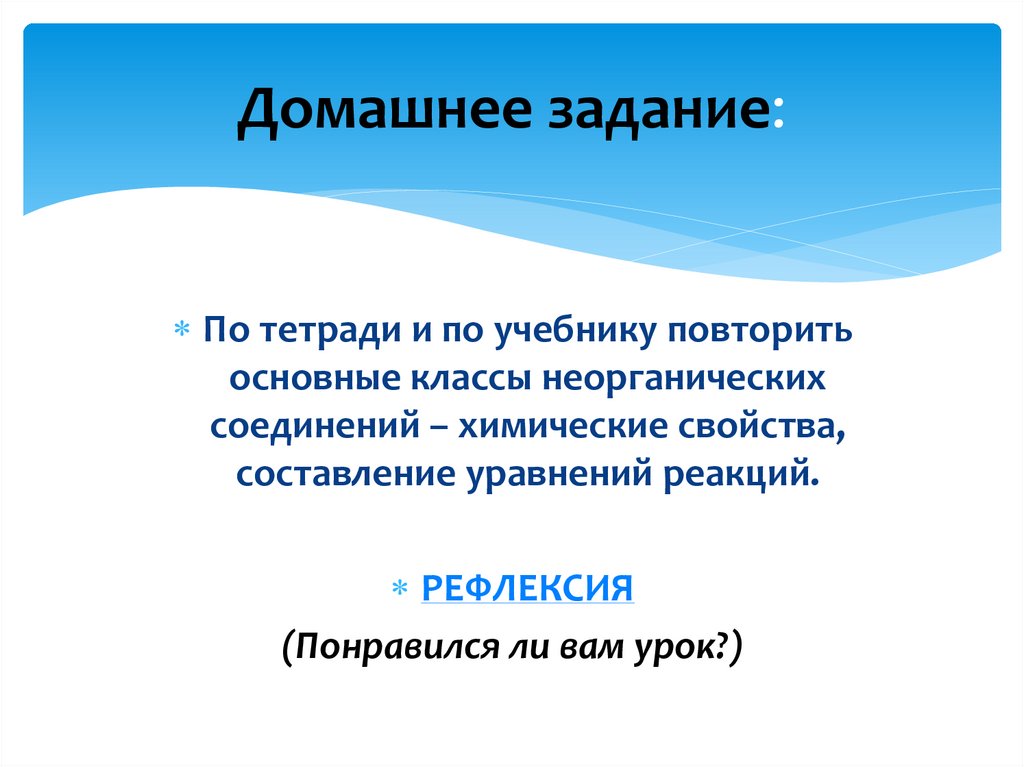 реакций в тетради).