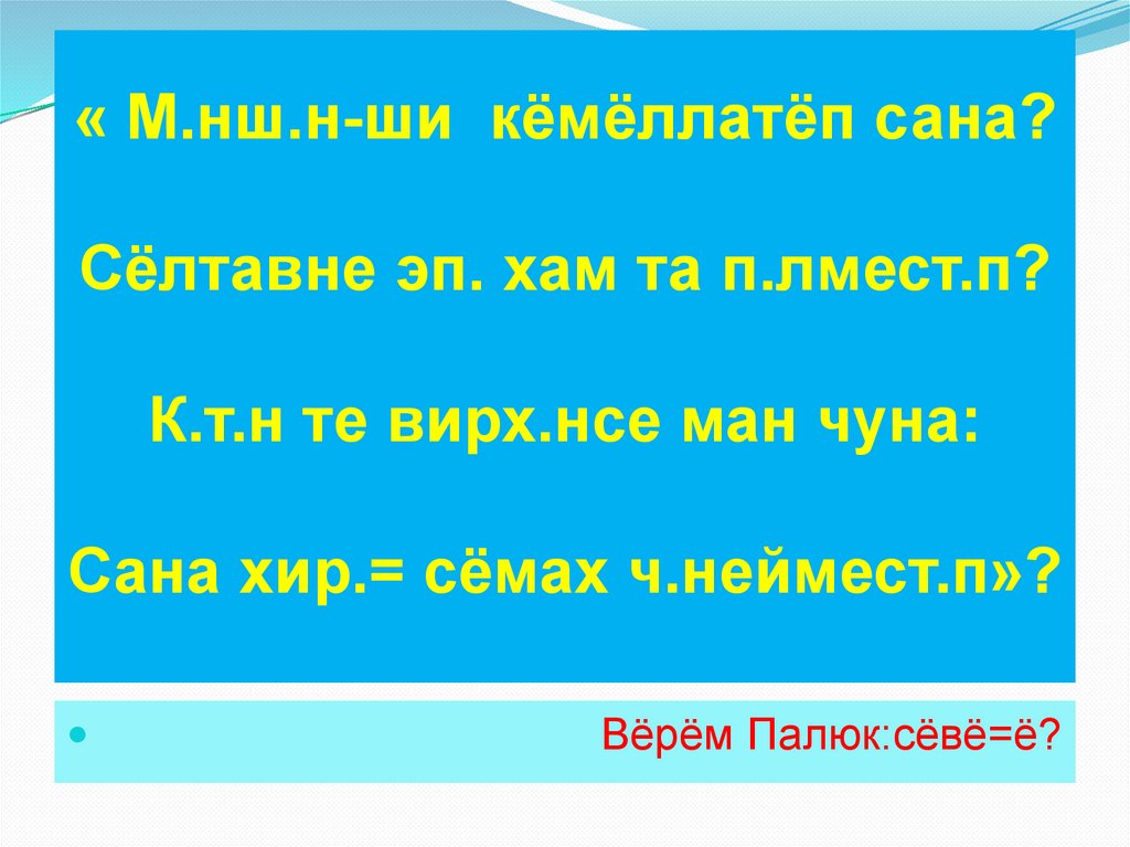 « М.нш.н-ши кёмёллатёп сана?Сёлтавне эп. хам та п.лмест.п?