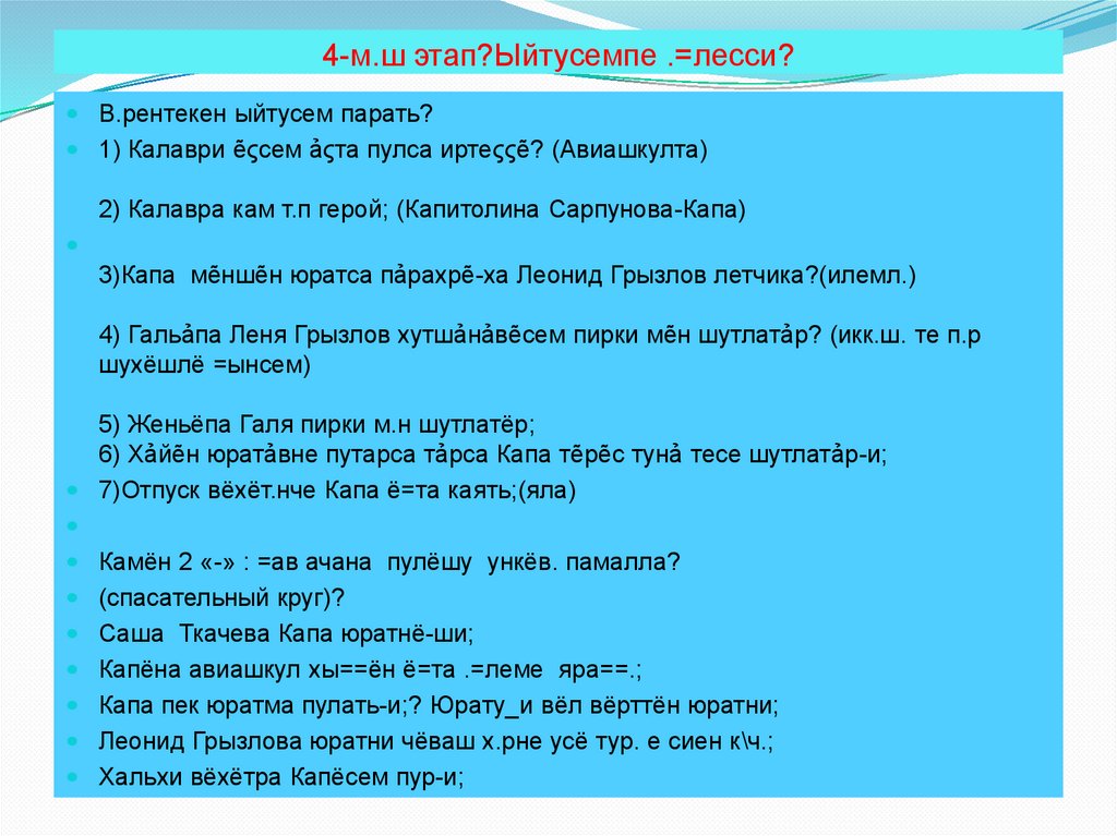 4-м.ш этап?Ыйтусемпе .=лесси?В.рентекен ыйтусем парать?