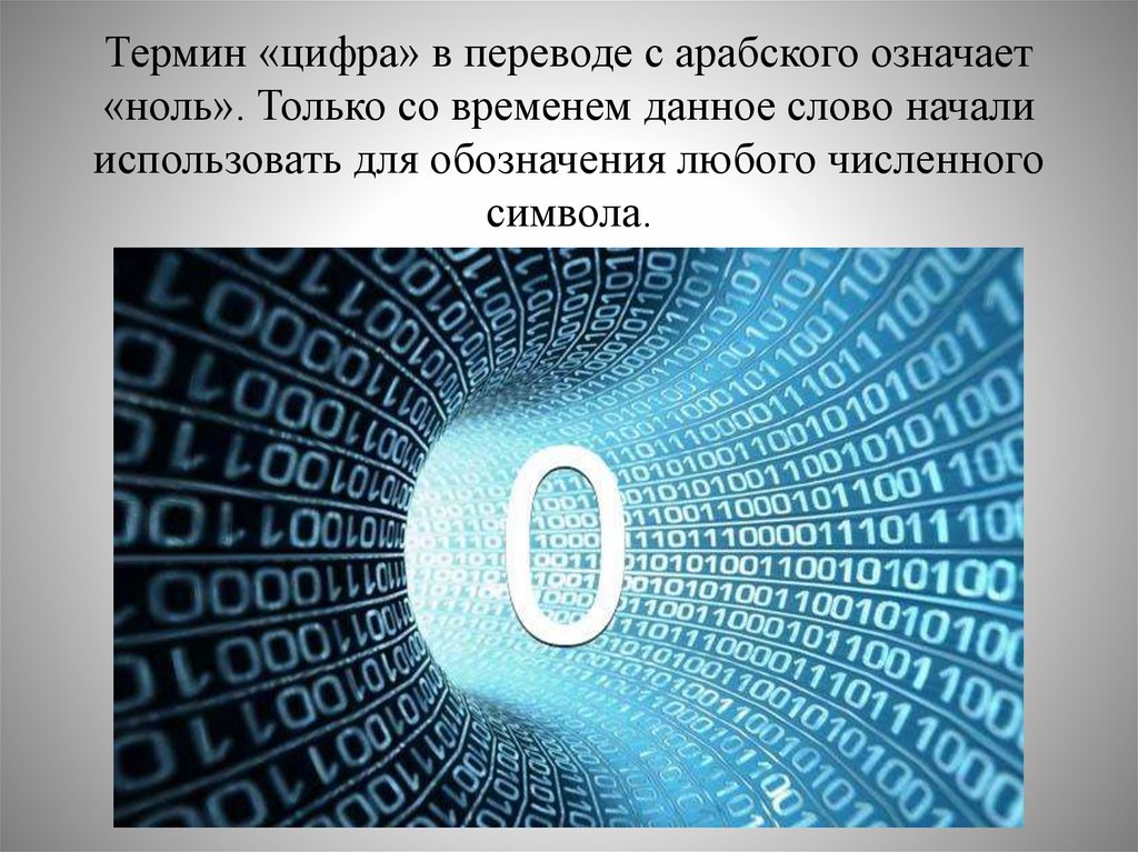 Термин «цифра» в переводе с арабского означает«ноль». Только со временем данное слово начали