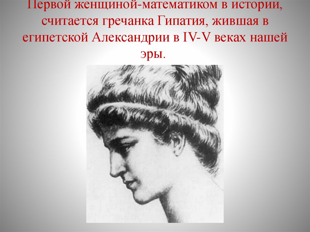 Первой женщиной-математиком в истории,считается гречанка Гипатия, жившая в