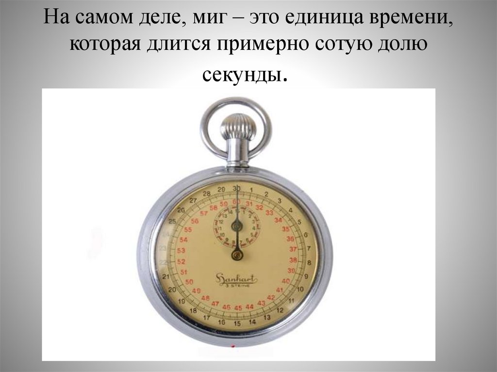 На самом деле, миг – это единица времени,которая длится примерно сотую долю