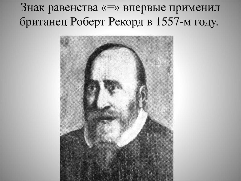 Знак равенства «=» впервые применилбританец Роберт Рекорд в 1557-м году.
