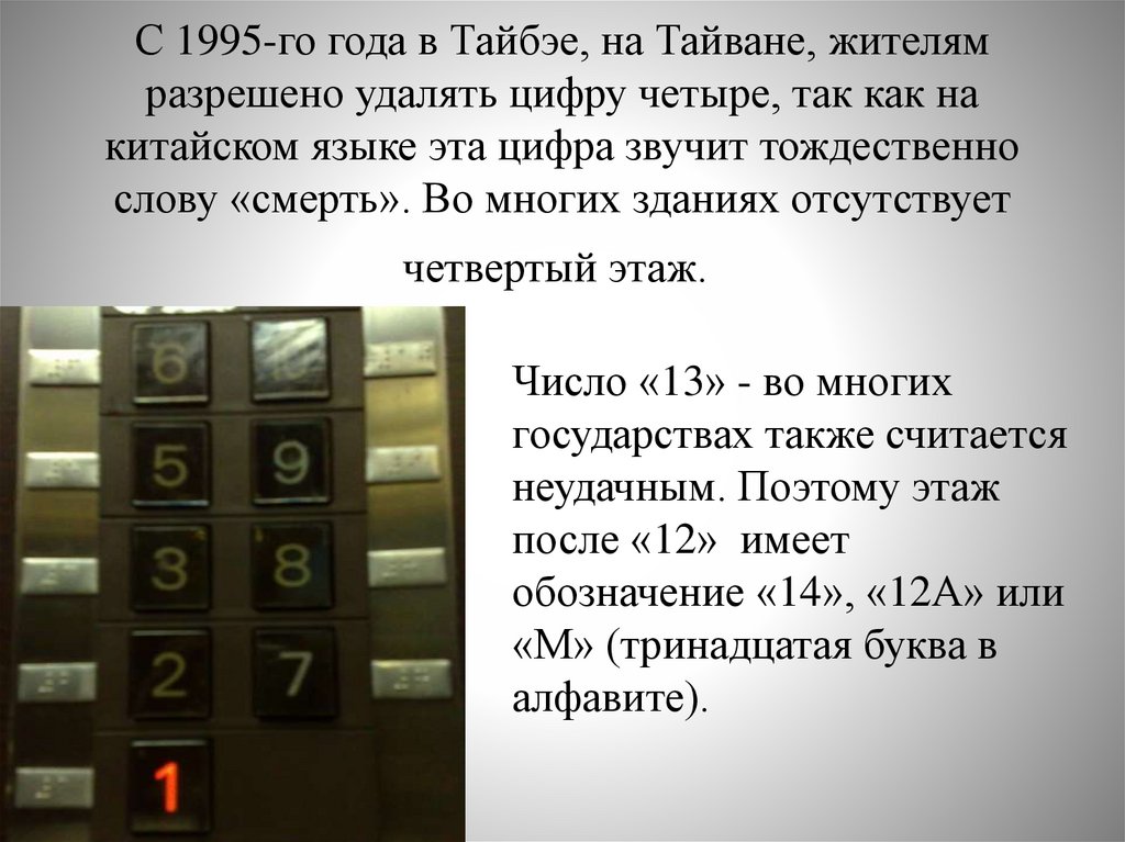 С 1995-го года в Тайбэе, на Тайване, жителямразрешено удалять цифру четыре, так как на
