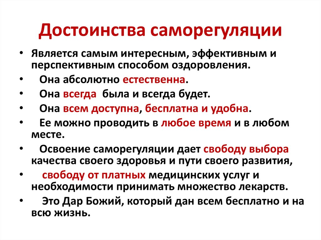 Достоинства саморегуляции• Является самым интересным, эффективным и