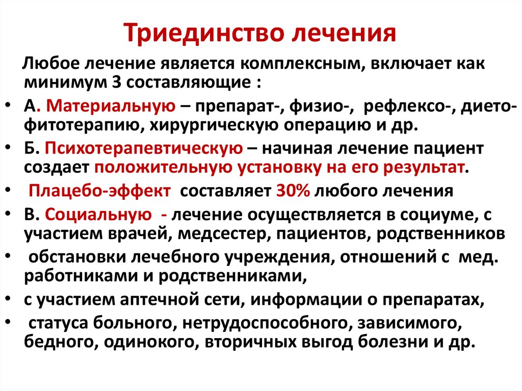 Триединство леченияЛюбое лечение является комплексным, включает как