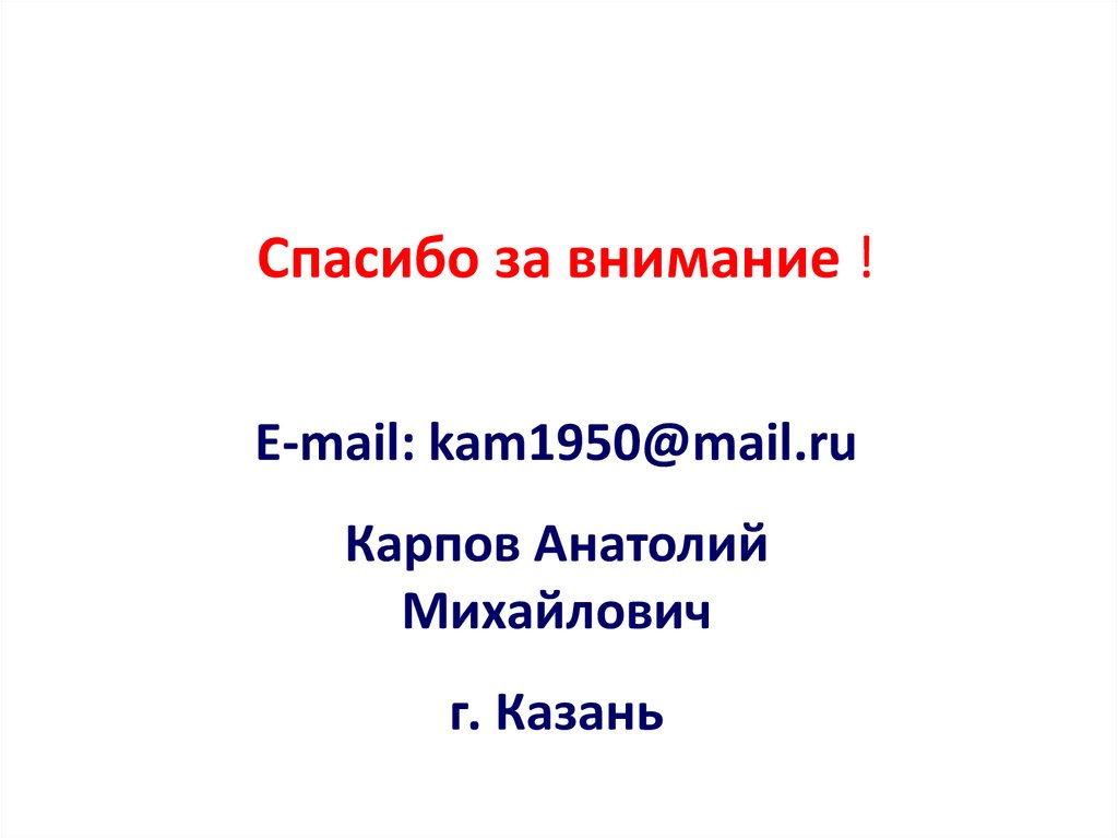 Спасибо за внимание !E-mail: kam1950@mail.ru