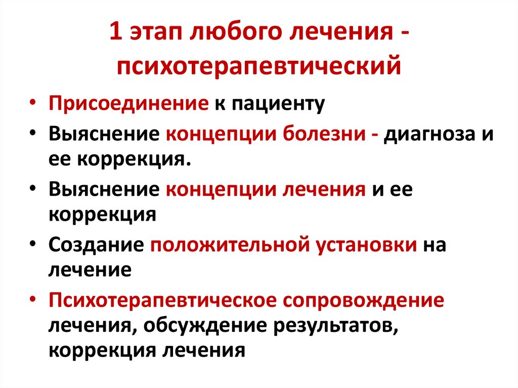 1 этап любого лечения психотерапевтический• Присоединение к пациенту