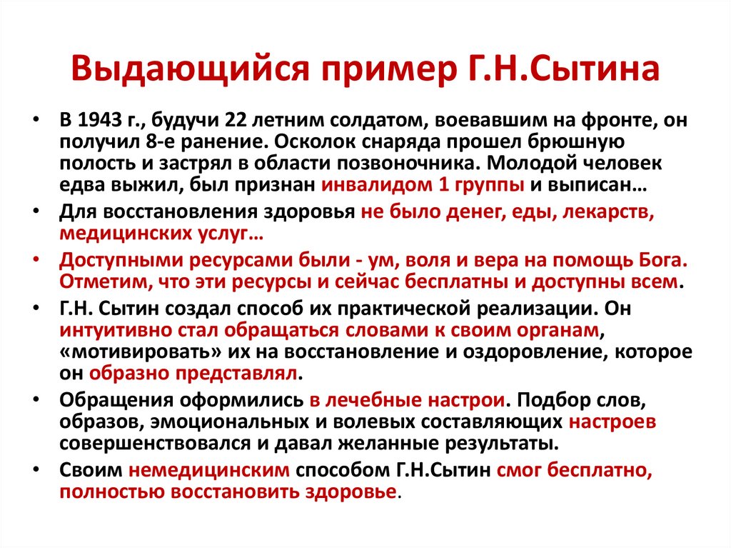 Выдающийся пример Г.Н.Сытина• В 1943 г., будучи 22 летним солдатом, воевавшим на фронте, он