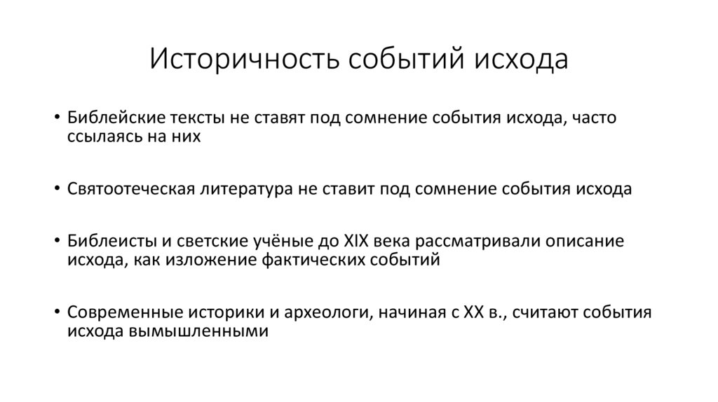 Историчность событий исхода• Библейские тексты не ставят под сомнение события исхода, часто