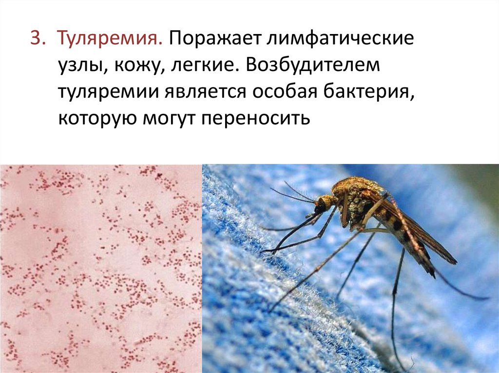 3. Туляремия. Поражает лимфатическиеузлы, кожу, легкие. Возбудителем