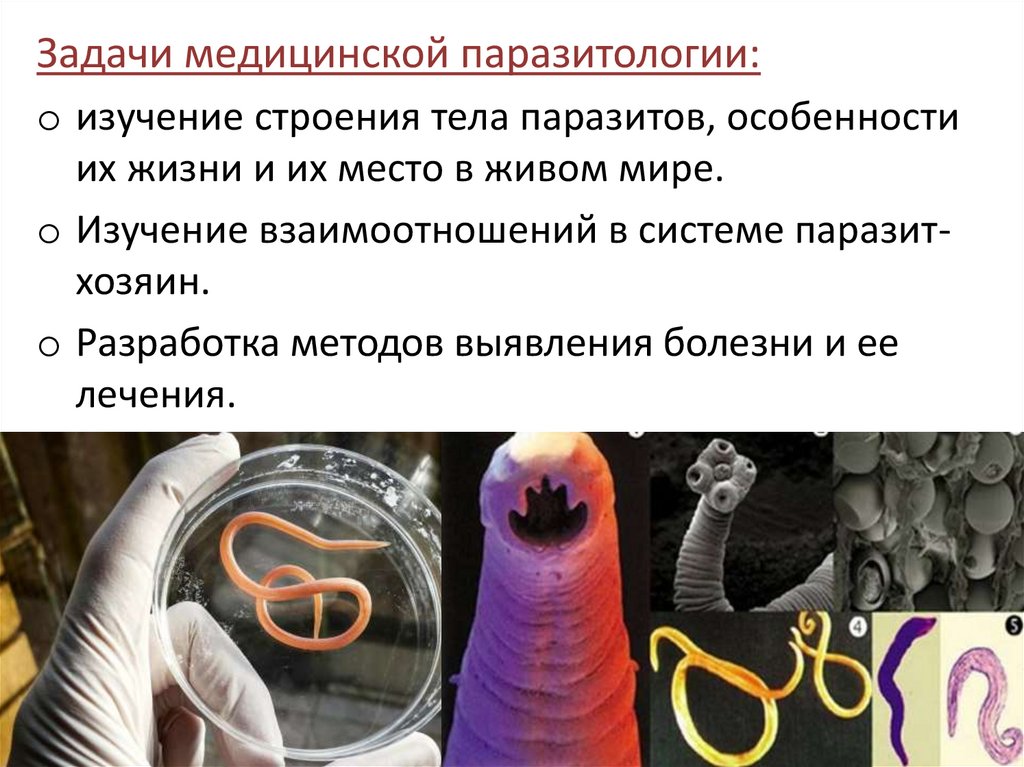 Задачи медицинской паразитологии:o изучение строения тела паразитов, особенности