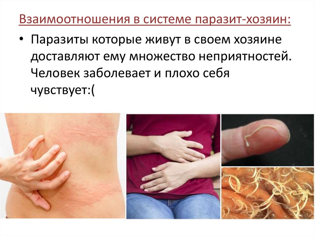 Взаимоотношения в системе паразит-хозяин:• Паразиты которые живут в своем хозяине
