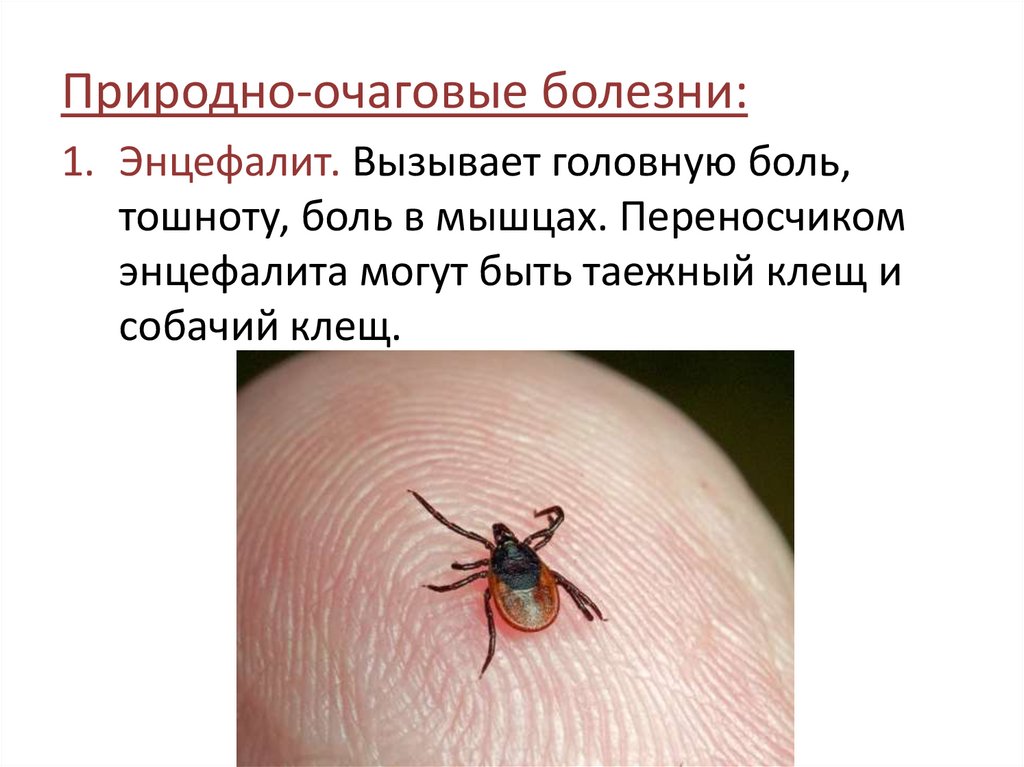 Природно-очаговые болезни:1. Энцефалит. Вызывает головную боль,