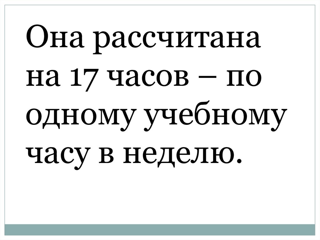 Она рассчитанана 17 часов – по