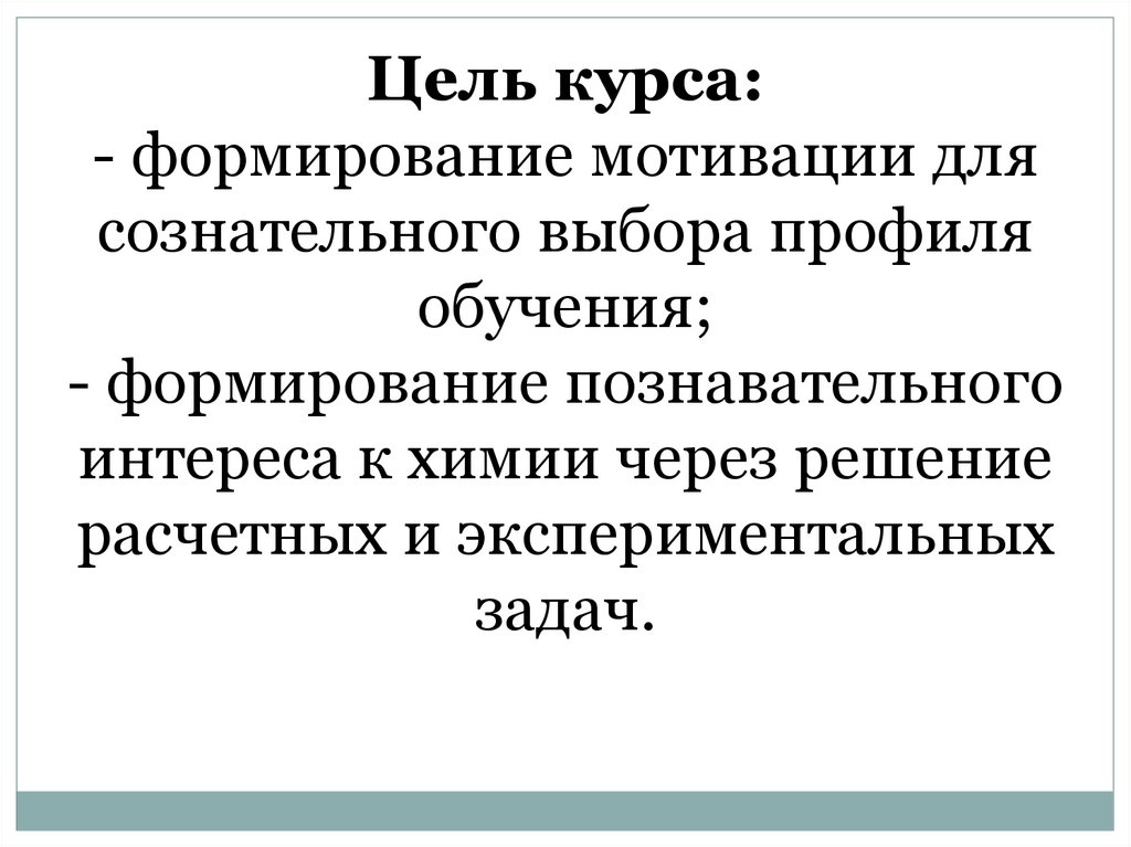 Цель курса:- формирование мотивации для