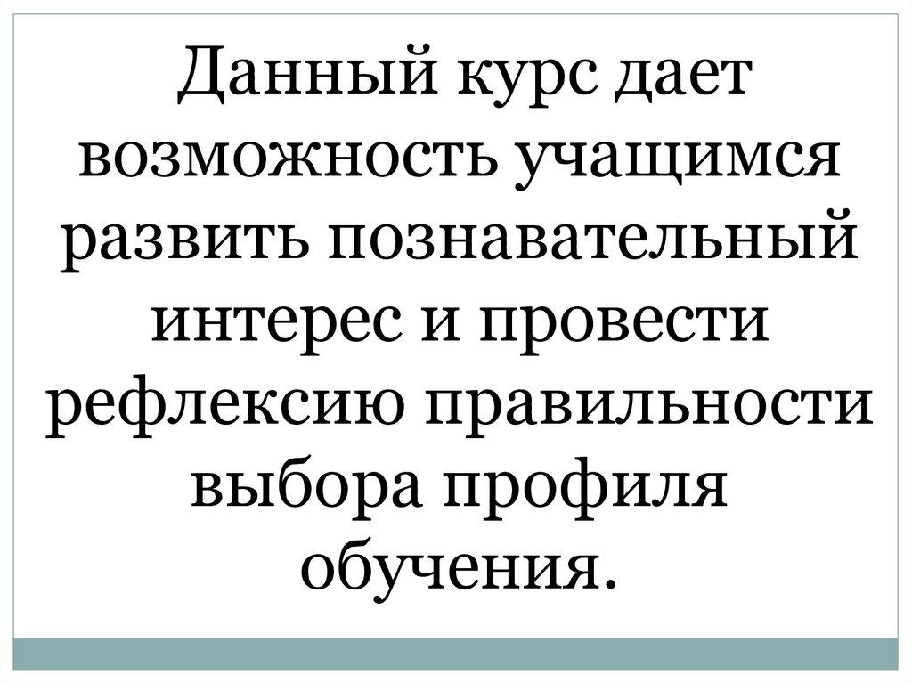 Данный курс даетвозможность учащимся
