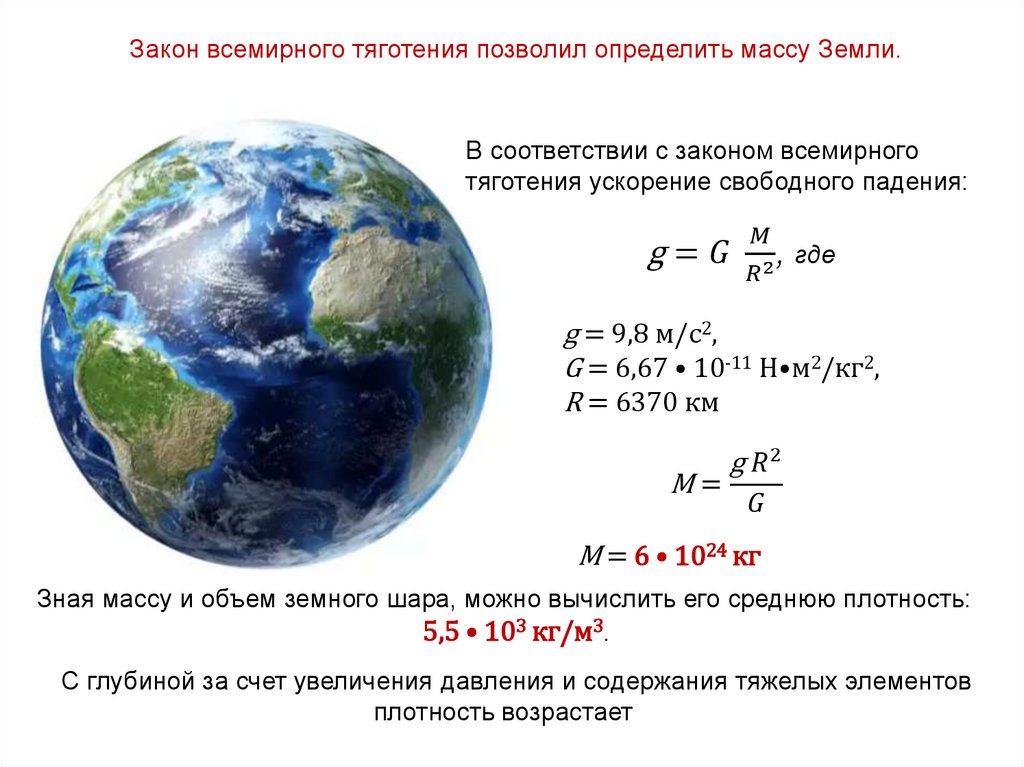 Закон всемирного тяготения позволил определить массу Земли.В соответствии с законом всемирного