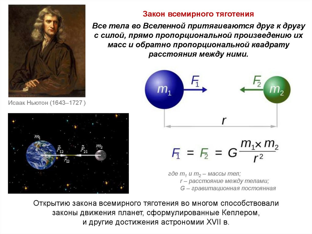 Закон всемирного тяготенияВсе тела во Вселенной притягиваются друг к другу