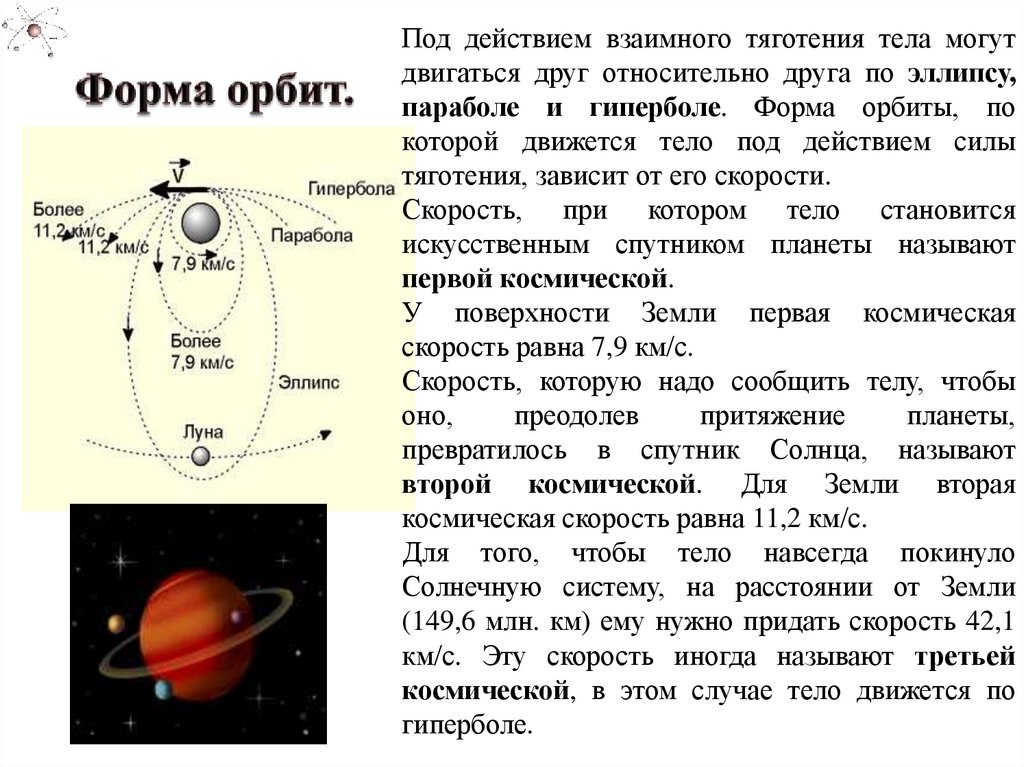 параболе и гиперболе. Форма орбиты, по