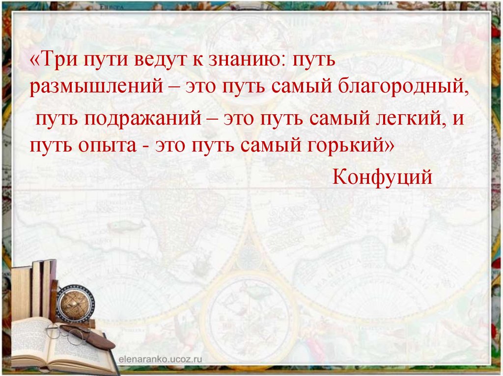 «Три пути ведут к знанию: путьразмышлений – это путь самый благородный,
