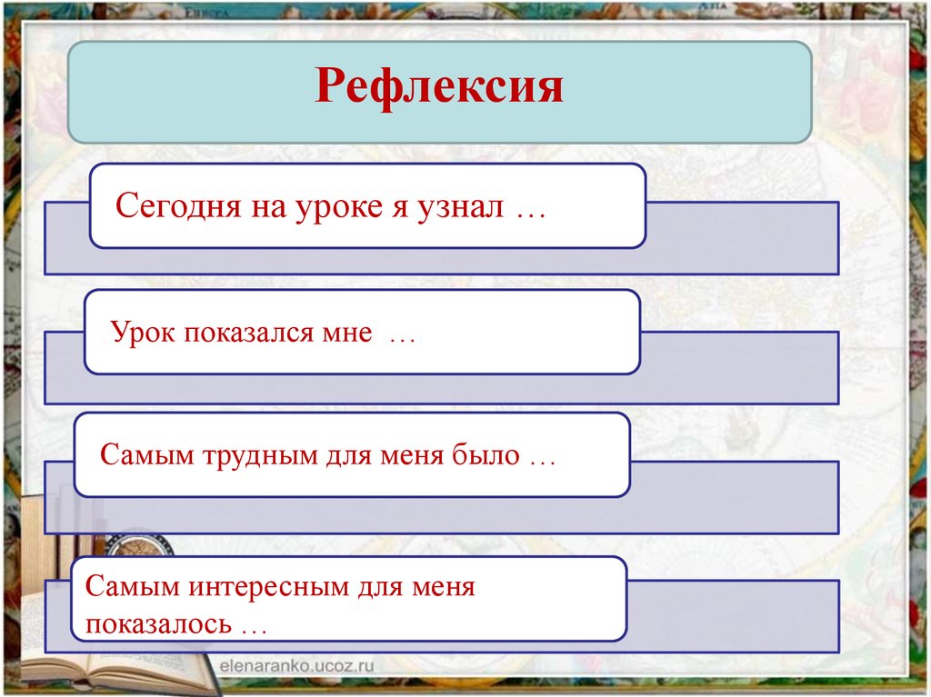 РефлексияСегодня на уроке я узнал …