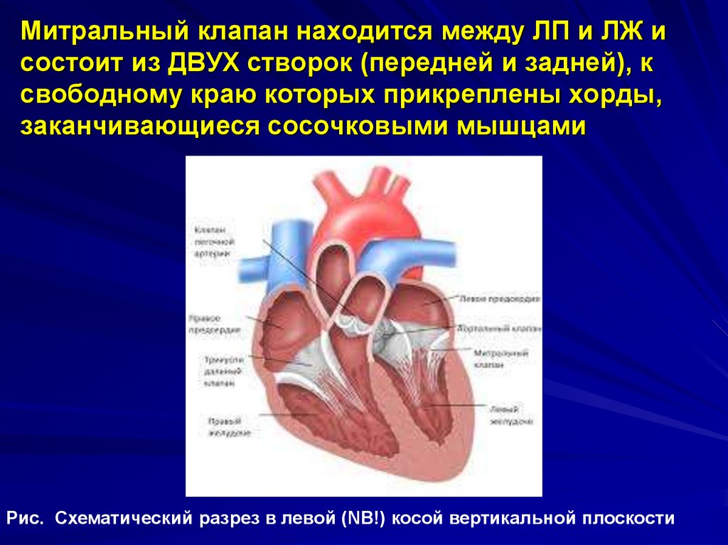 (справа) митральные клапаны.