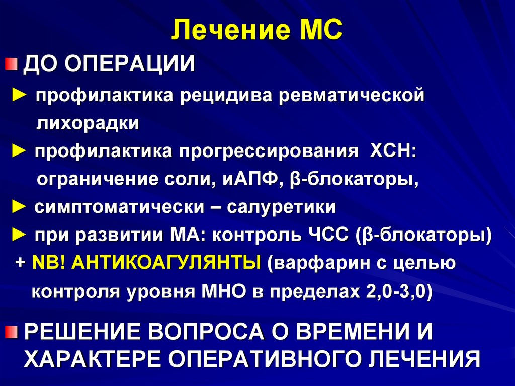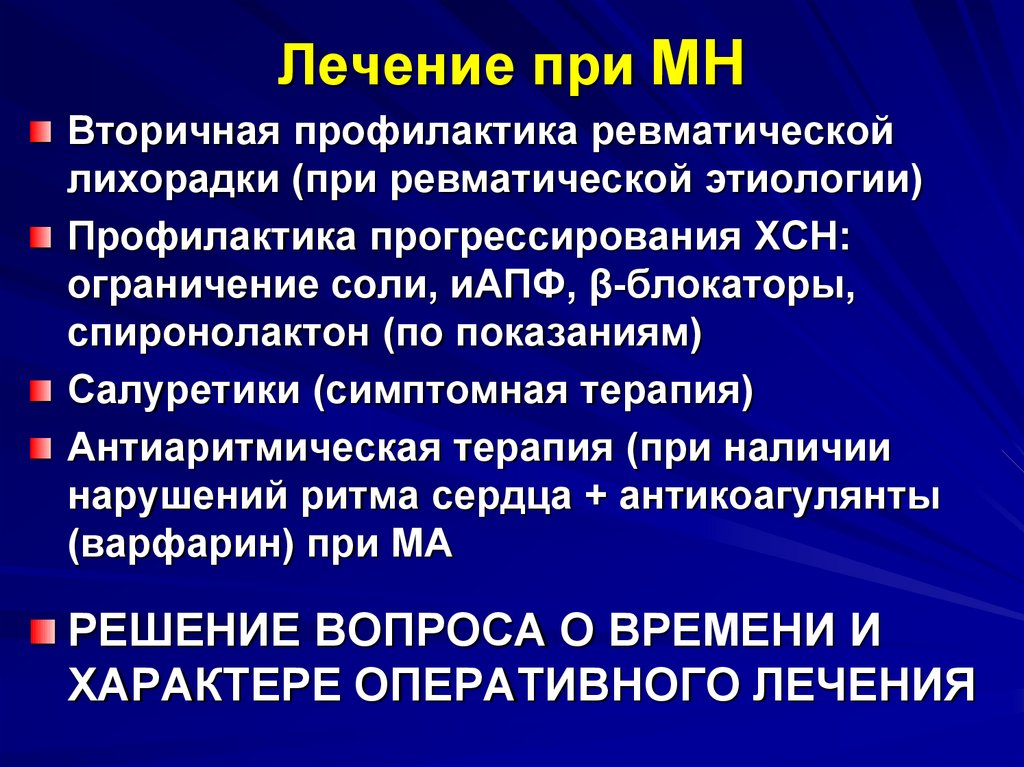 Лечение при МНВторичная профилактика ревматической